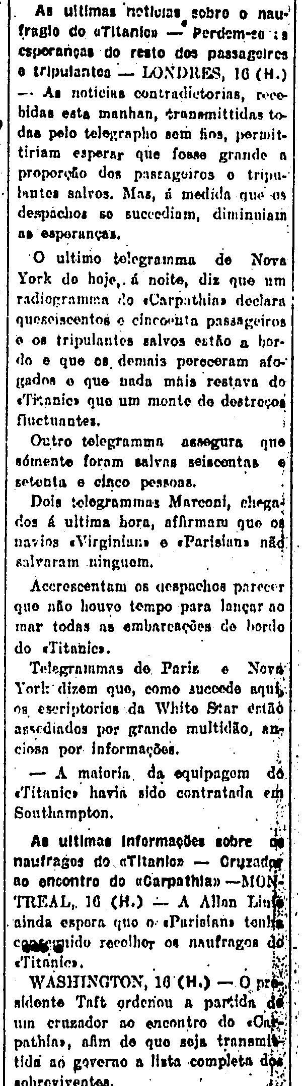 Abaixo, a notícia publicada no Estado de S. Paulo no dia 17 de Abril de 1912