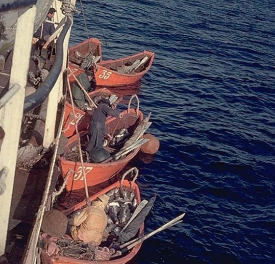 Cada barco dori transportava um pescador. Depois de pousar nos mares gelados, cada homem seguia o seu próprio destino com a ajuda de lemes ou de uma pequena vela. Por vezes navegavam a milhas de distância do SMM e desapareciam no meio do forte nevoeiro. Os pescadores passavam 13 horas consecutivas nos barcos dory e lançavam centenas de metros de linha com anzóis e isco para a água.